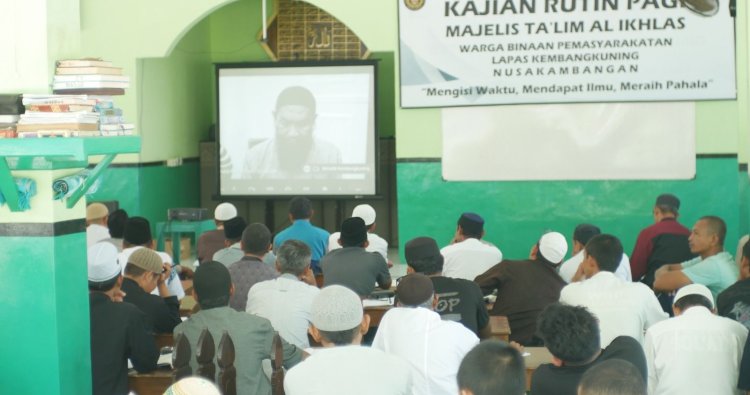 Cilacap - Lembaga Pemasyarakatan Kelas IIA Kembang Kuning terus melaksanakan program pembinaan kepribadian bagi Warga Binaan Pemasyarakatan (WBP) melalui kegiatan kajian rutin. Kegiatan yang pada umumnya dilaksanakan secara tatap muka ini, kali ini diselenggarakan secara online dengan memanfaatkan teknologi digital, Selasa (3/2/2026).