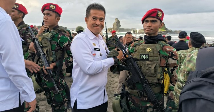 CILACAP - - INFO_PAS. Kepala Lembaga Pemasyarakatan Khusus Kelas IIA Karanganyar Nusakambangan, Riko Purnama Candra, menghadiri upacara pembaretan Prajurit Komando Pasukan Khusus (Kopassus) di Pantai Permisan, Nusakambangan - - Cilacap. Kegiatan pembaretan Prajurit Kopassus ini dipimpin secara langsung oleh Wakil Panglima TNI Jenderal TNI Tandyo Budi Revita, Kamis (30/10/2025).