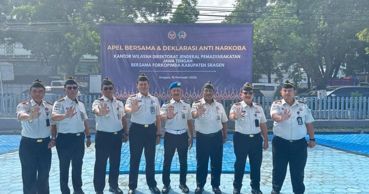 SRAGEN (12/02) — Kantor Wilayah Direktorat Jenderal Pemasyarakatan Jawa Tengah bersama Forkopimda Kabupaten Sragen melaksanakan Apel dan Deklarasi Anti Narkoba pada 12 Februari 2026 di Halaman Depan Lembaga Pemasyarakatan Kelas IIA Sragen. Kegiatan ini menjadi bentuk komitmen bersama dalam memerangi peredaran narkoba di lingkungan pemasyarakatan sekaligus memperkuat sinergi antarinstansi.