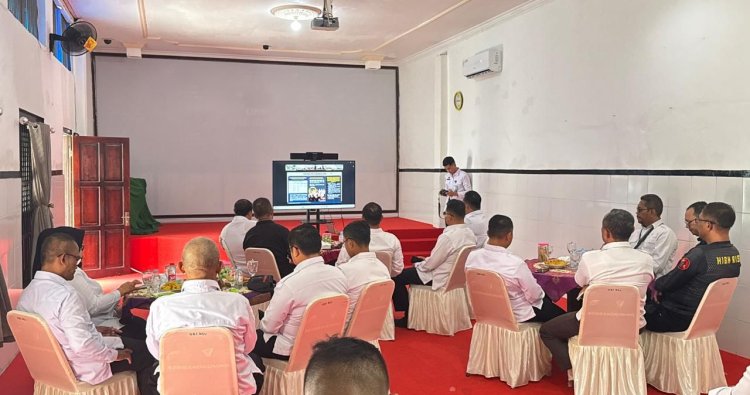 CILACAP, INFO_PAS – Lapas Khusus Kelas IIA Karanganyar bersama seluruh Unit Pelaksana Teknis (UPT) se-Nusakambangan mengikuti kegiatan zoom arahan Menteri Imigrasi dan Pemasyarakatan terkait persiapan pengadaan bahan makanan untuk UPT Pemasyarakatan Tahun Anggaran 2026. Kegiatan ini dilaksanakan terpusat di Aula Lapas Kelas IIA Kembangkuning, Nusakambangan, pada Kamis pagi dengan dihadiri jajaran pemasyarakatan dari seluruh wilayah Nusakambangan, Kamis (04/12/25).