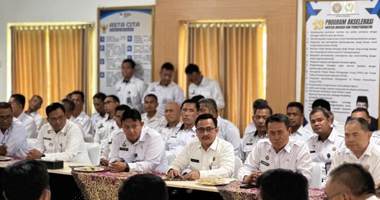 NUSAKAMBANGAN, INFO_PAS - Dalam upaya memperkuat sinergi dan evaluasi program ketahanan pangan di lingkungan Pemasyarakatan Nusakambangan, Kepala Kantor Wilayah Direktorat Jenderal Pemasyarakatan (Ditjenpas) Jawa Tengah memimpin rapat koordinasi bersama seluruh Kepala Unit Pelaksana Teknis (Ka-UPT) Pemasyarakatan Nusakambangan. Kegiatan tersebut dilaksanakan di Aula Wismasari Lapas Kelas I Batu Nusakambangan, Senin (20/10/2025).